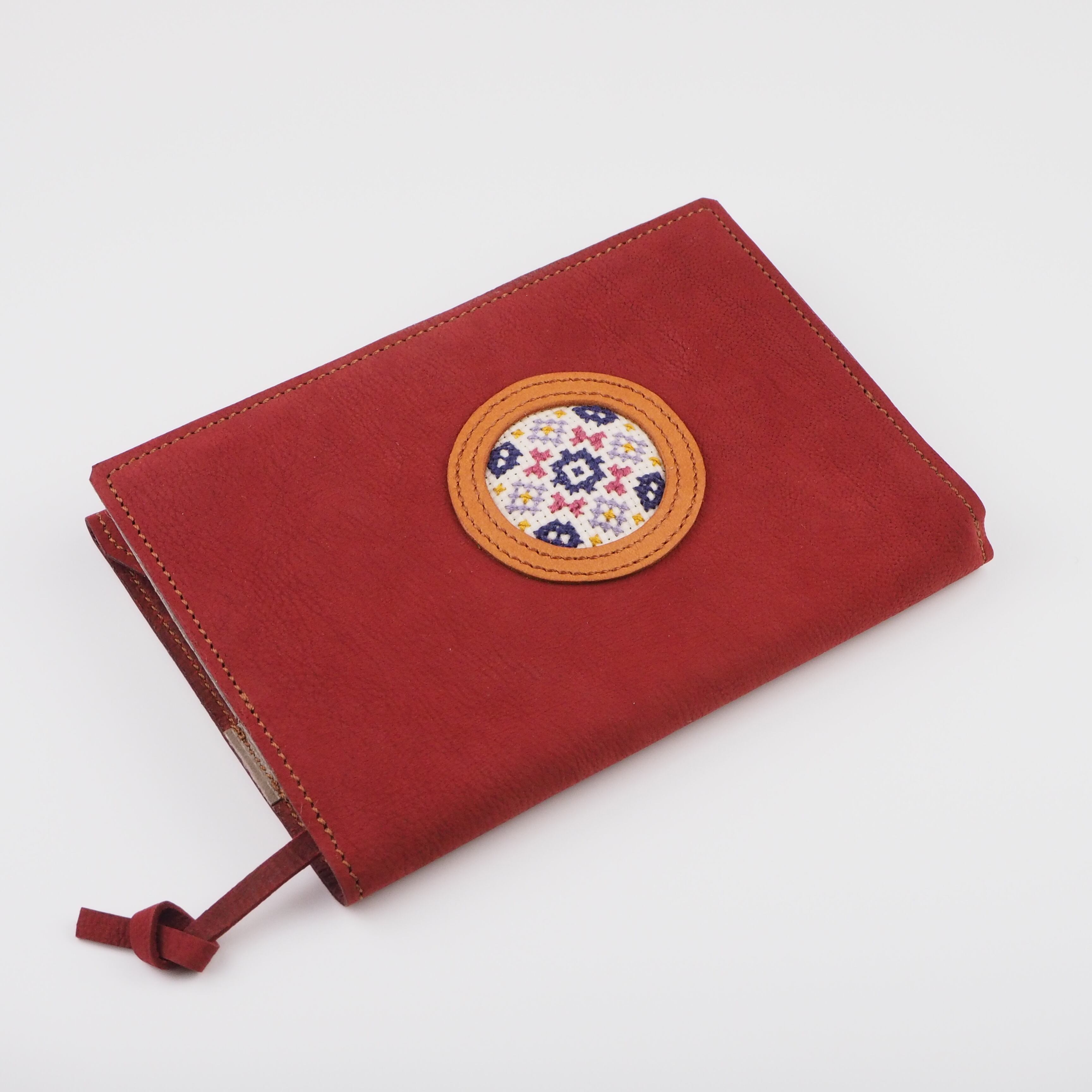 表はマットな赤のレザー、内側は少しつやのあるグレーのレザーを使用。