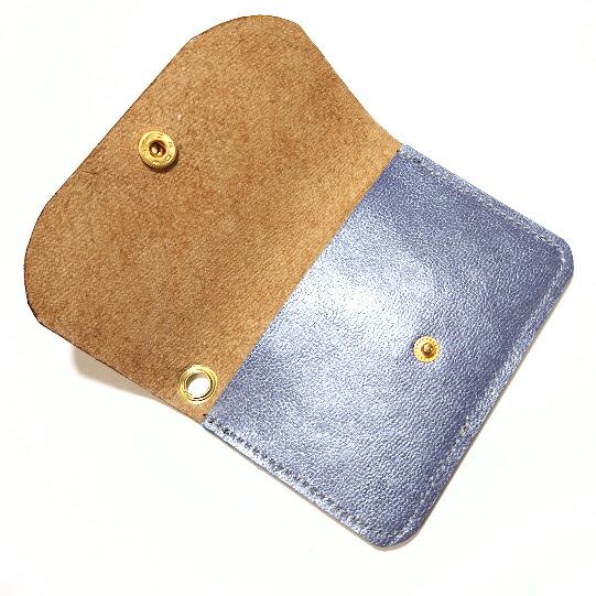 ポケット部にはしわのような加工を施したパール調のパープルの革を使用しております。