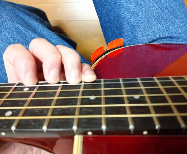 3 ピックを入れた状態で楽器に両面テープで貼り付けます。